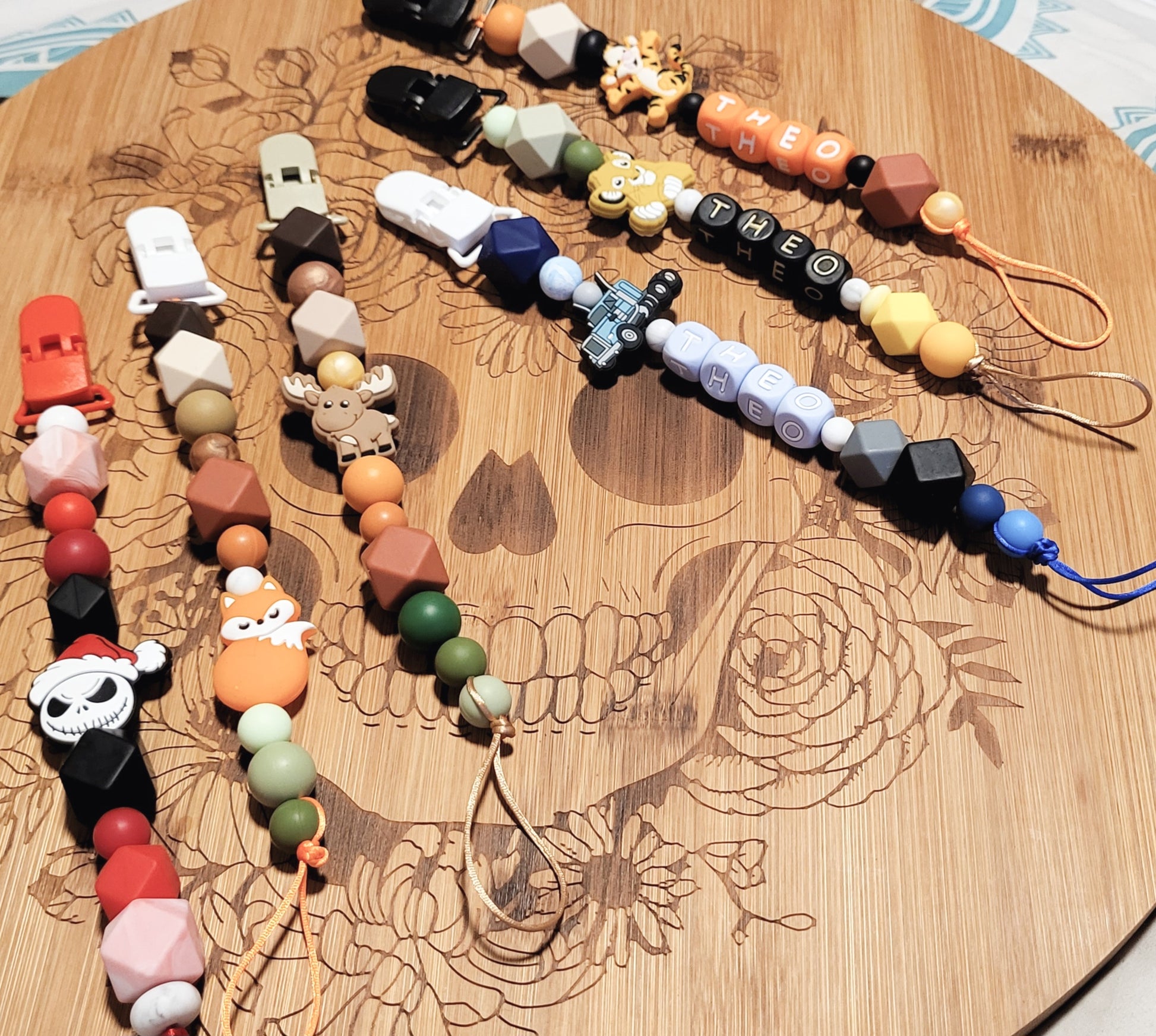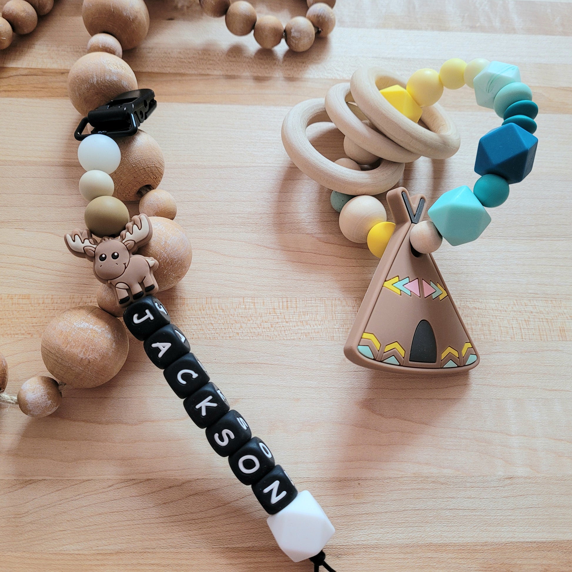 Matériel : Silicone de qualité alimentaire sans BPA, produits toxiques, teintures et imprimeries ainsi que du bois non vernis :).