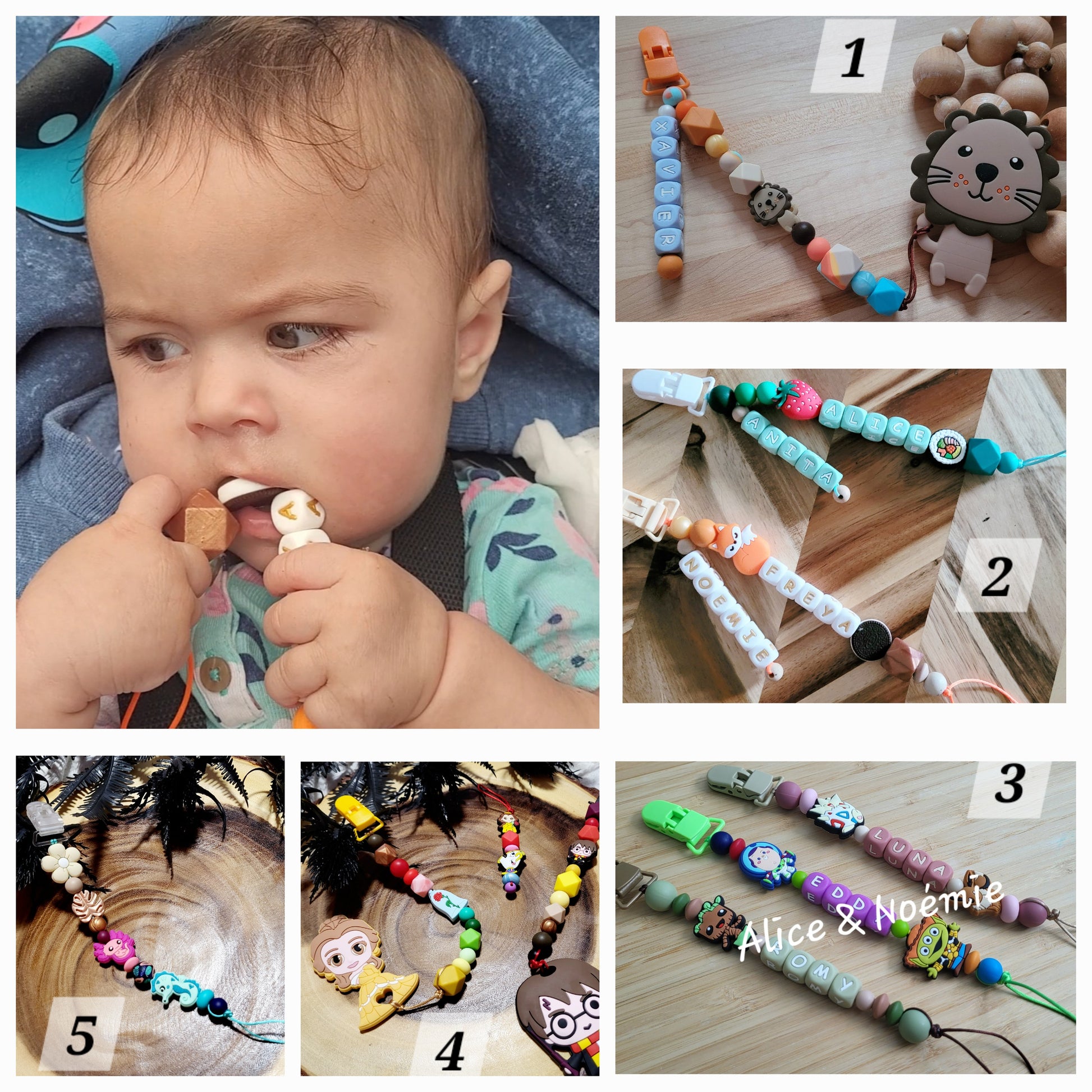 Pratique afin de ne plu perdre les suces de bébé, il est fait de silicone de grade alimentaire pour soulager des douleurs ressenties par la poussée dentaire pouvant survenir à tout moment ainsi que pour amuser bébé.