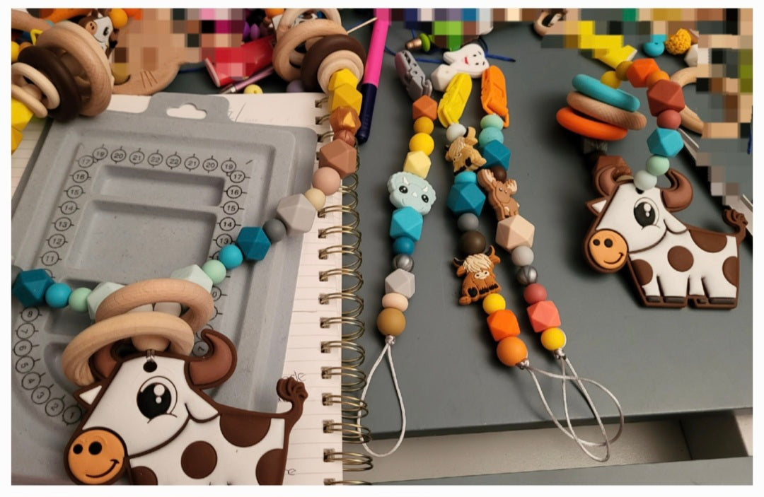 Matériel : Silicone de qualité alimentaire sans BPA, produits toxiques, teintures et imprimeries ainsi que du bois non vernis :).