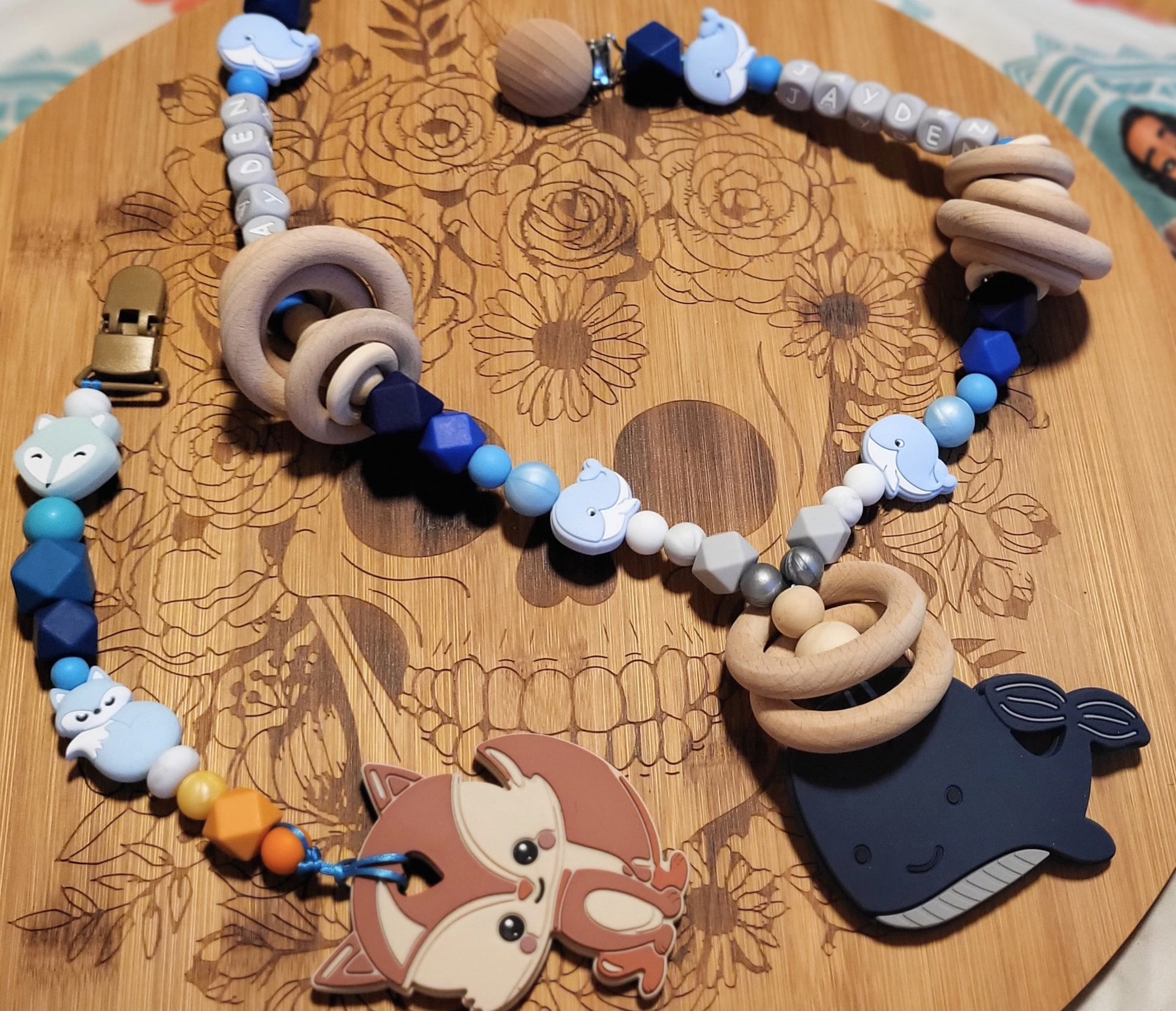Matériel : Silicone de qualité alimentaire sans BPA, produits toxiques, teintures et imprimeries ainsi que du bois non vernis :).